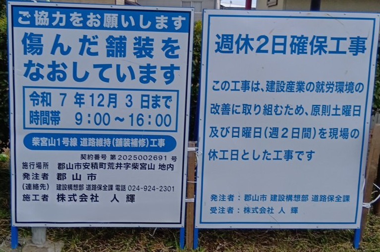 - 郡山市発注工事 柴宮山1号線 道路維持(舗装補修……