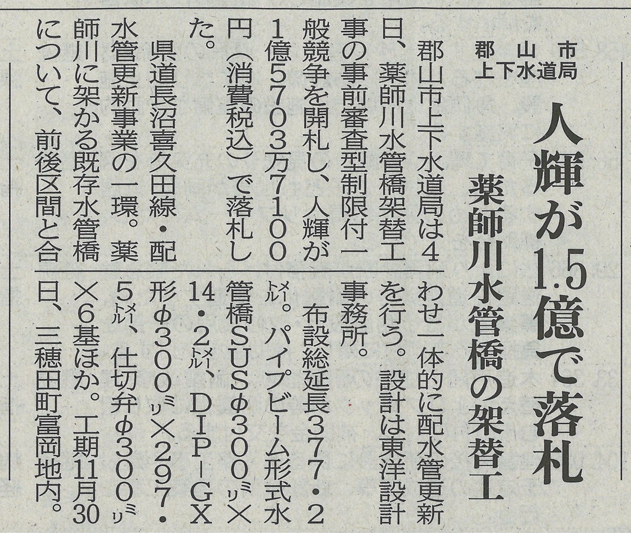 - 2月6日付 福島建設工業新聞に、郡山市上下水道局……